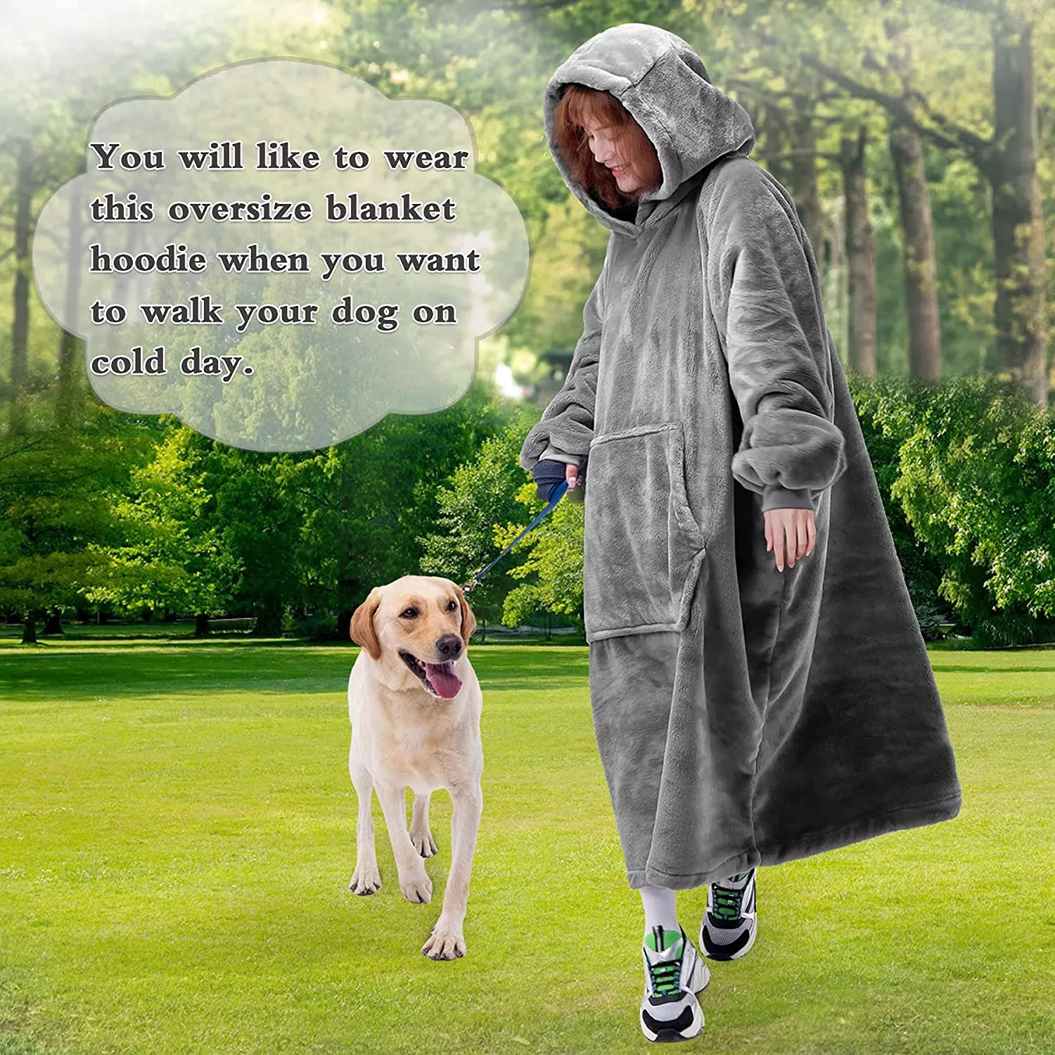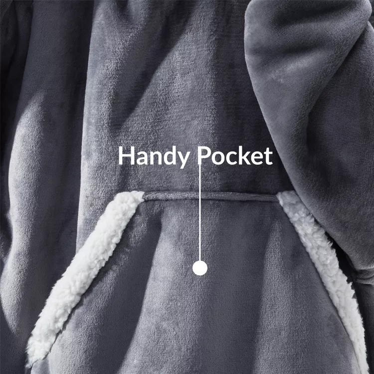 Aquesta manta es pot utilitzar per a barbacoes a l'aire lliure, càmping, platja, conduir o per passar la nit. Característiques: La caputxa i les butxaques enormes mantenen el cap i les mans calents i còmodes. Posa el que necessitis a la butxaca, a l'abast.