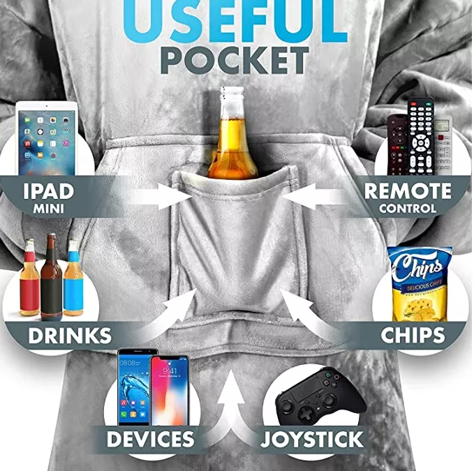Mantes portables: la suavitat de les mantes es combina amb una gran sudadera amb caputxa. Aquesta manta portable et manté calent i còmode quan estàs estirat a casa, mirant la televisió, jugant a videojocs, treballant amb el teu portàtil, acampant, participant en esports o concerts, i molt més.